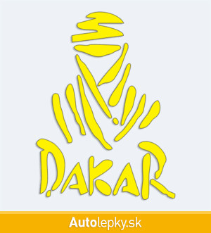Nálepku Dakar na auto vyrábame v 40 farbách a mnohých veľkostiach. Minimálny rozmer samolepky je 7.4×10 cm, katalógové číslo 5940. Nálepka Dakar na auto je vyrobená z kvalitnej samolepiacej fólie s životnosťou 3-5 rokov.