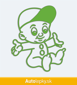 Originálnu nálepku dieťa v aute bábätko v šiltovke doplníte menom dieťaťa alebo textom s dĺžkou až 30 znakov. Minimálny rozmer samolepky je 8.2×10 cm, katalógové číslo 22360. Nálepka dieťa v aute bábätko v šiltovke upozorní ostatných vodičov na prepravované dieťa v aute.