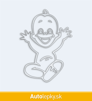 Samolepku dieťa v aute chlapček môžete doplniť menom dieťaťa alebo krátkym ľubovoľným textom. Minimálny rozmer samolepky je 7.2×10 cm, katalógové číslo 3420. Nálepka dieťa v aute chlapček upozorňuje na prepravované dieťa v aute.