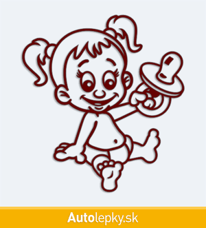 Originálnu nálepku dieťa v aute dievčatko s cumlíkom doplníte menom dieťaťa alebo textom s dĺžkou až 30 znakov. Minimálny rozmer samolepky je 9.1×10 cm, katalógové číslo 22531. Nálepka dieťa v aute dievčatko s cumlíkom upozorní ostatných vodičov na prepravované dieťa v aute.