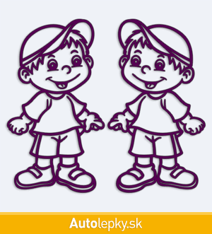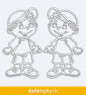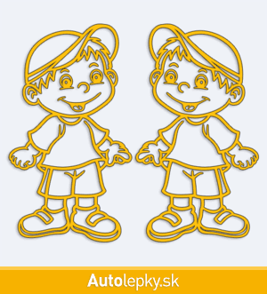 Samolepku dieťa v aute dvaja chlapci s čiapkou môžete doplniť menom dieťaťa alebo krátkym ľubovoľným textom. Minimálny rozmer samolepky je 10×8.7 cm, katalógové číslo 4612. Nálepka dieťa v aute dvojčatá - dvaja chlapci s čiapkou upozorňuje na prepravované dieťa v aute.