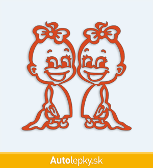 Samolepku dieťa v aute dve dievčatká môžete doplniť menom dieťaťa alebo krátkym ľubovoľným textom. Minimálny rozmer samolepky je 10×10 cm, katalógové číslo 4346. Nálepka dieťa v aute dvojčatá - dve dievčatká upozorňuje na prepravované dieťa v aute.
