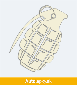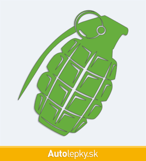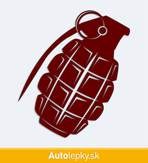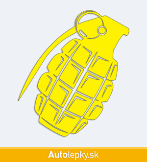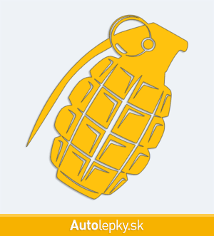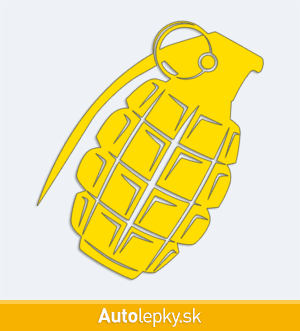 Nálepku handgranát na auto vyrábame v 40 farbách a mnohých veľkostiach. Minimálny rozmer samolepky je 8.7×10 cm, katalógové číslo 6276. Nálepka handgranát na auto je vyrobená z kvalitnej samolepiacej fólie s životnosťou 3-5 rokov.