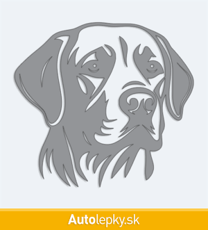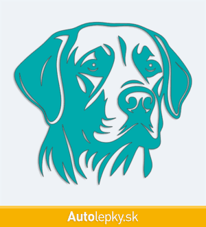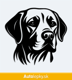 Nálepku hlava labradora na auto vyrábame v 40 farbách a mnohých veľkostiach. Minimálny rozmer samolepky je 10×9.2 cm, katalógové číslo 6143. Nálepka hlava labradora na auto je vyrobená z kvalitnej samolepiacej fólie s životnosťou 3-5 rokov.
