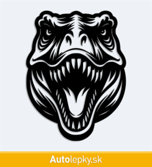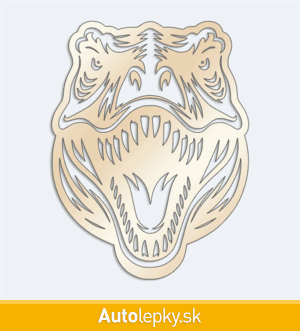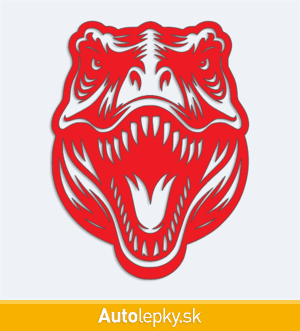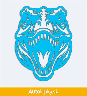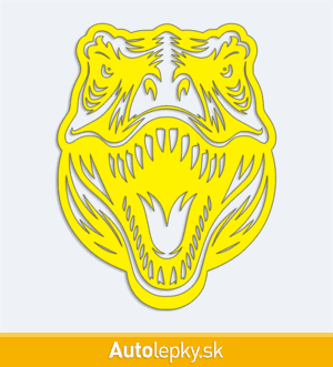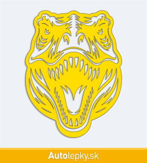 Nálepku hlava t-rexe na auto vyrábame v 40 farbách a mnohých veľkostiach. Minimálny rozmer samolepky je 7.6×10 cm, katalógové číslo 6100. Nálepka hlava t-rexe na auto je vyrobená z kvalitnej samolepiacej fólie s životnosťou 3-5 rokov.