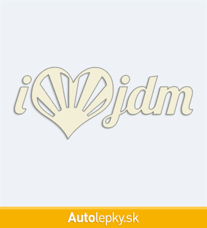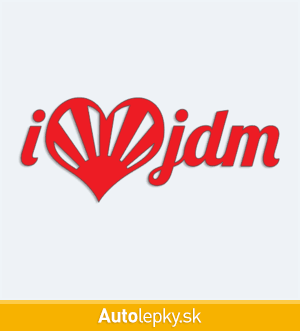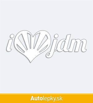Nálepku i love jdm na auto vyrábame v 40 farbách a mnohých veľkostiach. Minimálny rozmer samolepky je 10×4.1 cm, katalógové číslo 6142. Nálepka i love jdm na auto je vyrobená z kvalitnej samolepiacej fólie s životnosťou 3-5 rokov.
