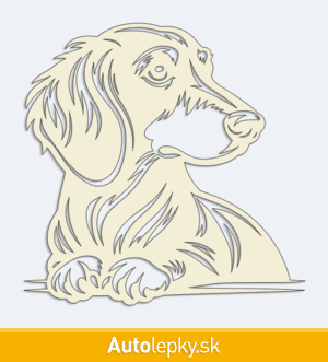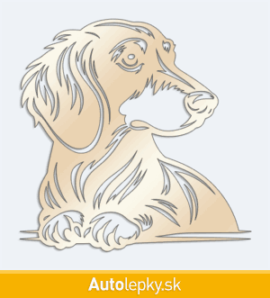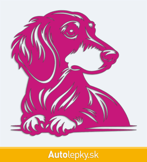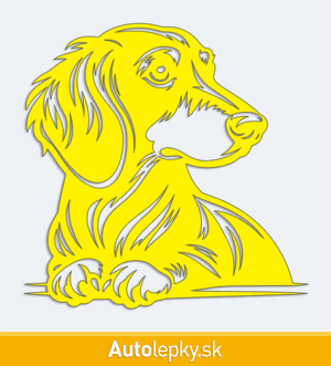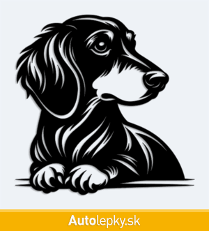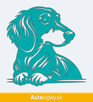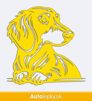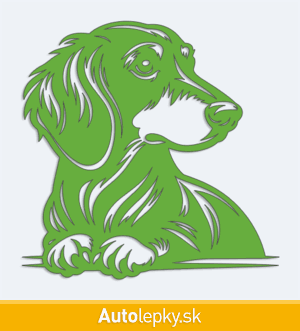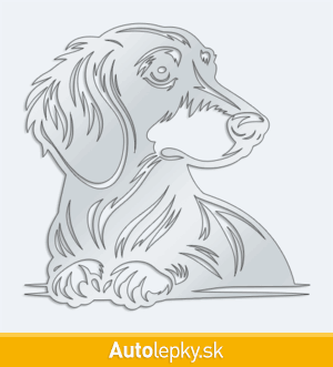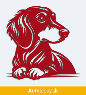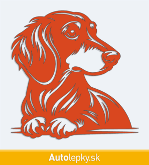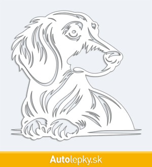 Nálepku jezevčík na auto vyrábame v 40 farbách a mnohých veľkostiach. Minimálny rozmer samolepky je 13×13 cm, katalógové číslo 6242. Nálepka jezevčík na auto je vyrobená z kvalitnej samolepiacej fólie s životnosťou 3-5 rokov.