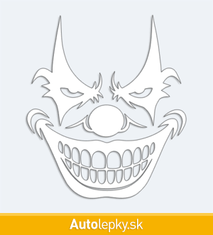 Nálepku Joker na auto vyrábame v 40 farbách a mnohých veľkostiach. Minimálny rozmer samolepky je 8.7×10 cm, katalógové číslo 6074. Nálepka Joker na auto je vyrobená z kvalitnej samolepiacej fólie s životnosťou 3-5 rokov.