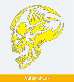 Nálepku lebka so zubami na auto vyrábame v 40 farbách a mnohých veľkostiach. Minimálny rozmer samolepky je 8.4×10 cm, katalógové číslo 5580. Nálepka lebka so zubami na auto je vyrobená z kvalitnej samolepiacej fólie s životnosťou 3-5 rokov.