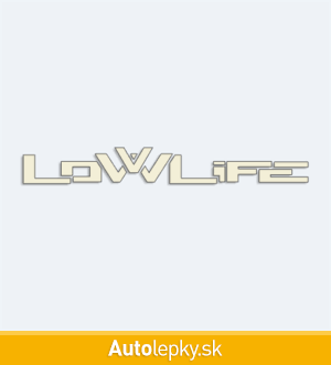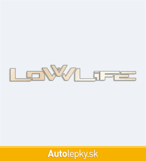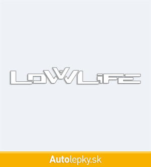 Nálepku lowlife na auto vyrábame v 40 farbách a mnohých veľkostiach. Minimálny rozmer samolepky je 10×1.3 cm, katalógové číslo 5720. Nálepka lowlife na auto je vyrobená z kvalitnej samolepiacej fólie s životnosťou 3-5 rokov.