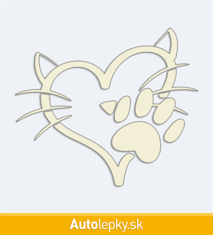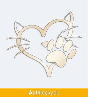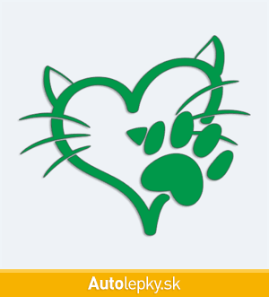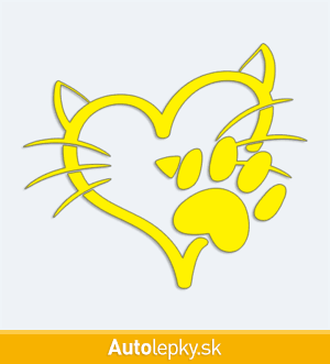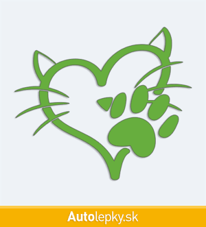 Nálepku mačacia láska na auto vyrábame v 40 farbách a mnohých veľkostiach. Minimálny rozmer samolepky je 10×8.6 cm, katalógové číslo 6227. Nálepka mačacia láska na auto je vyrobená z kvalitnej samolepiacej fólie s životnosťou 3-5 rokov.