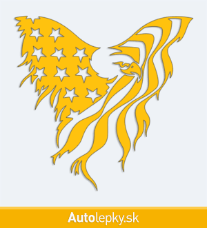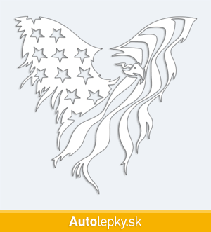 Nálepku americký orol na auto vyrábame v 40 farbách a mnohých veľkostiach. Minimálny rozmer samolepky je 10×9.9 cm, katalógové číslo 2887. Nálepka na auto americký orol s vlajkou je vyrobená z kvalitnej samolepiacej fólie s životnosťou 3-5 rokov.
