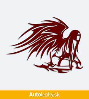 Nálepku anjelská mrcha na auto vyrábame v 40 farbách a mnohých veľkostiach. Minimálny rozmer samolepky je 15×11 cm, katalógové číslo 5437. Nálepka na auto anjelská mrcha je vyrobená z kvalitnej samolepiacej fólie s životnosťou 3-5 rokov.