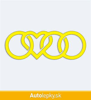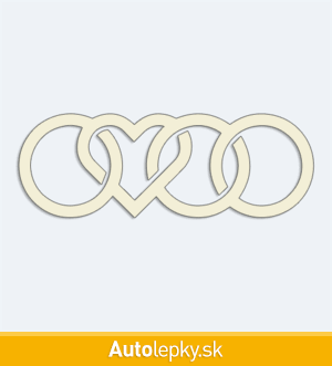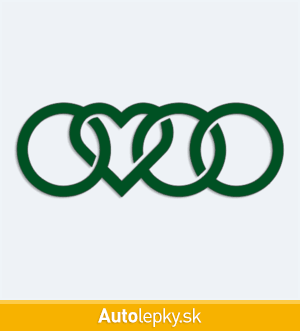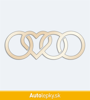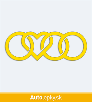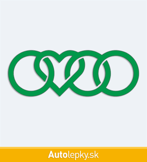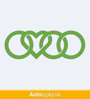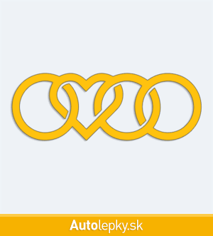 Nálepku Audi love na auto vyrábame v 40 farbách a mnohých veľkostiach. Minimálny rozmer samolepky je 10×3.5 cm, katalógové číslo 5962. Nálepka na auto Audi love je vyrobená z kvalitnej samolepiacej fólie s životnosťou 3-5 rokov.