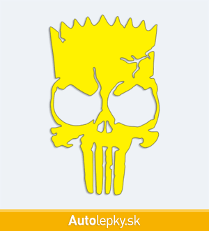 Nálepku bart skull na auto vyrábame v 40 farbách a mnohých veľkostiach. Minimálny rozmer samolepky je 6.1×10 cm, katalógové číslo 6186. Nálepka na auto bart skull je vyrobená z kvalitnej samolepiacej fólie s životnosťou 3-5 rokov.