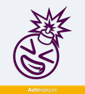 Nálepku bomba smajlík na auto vyrábame v 40 farbách a mnohých veľkostiach. Minimálny rozmer samolepky je 8×10 cm, katalógové číslo 1553. Nálepka na auto bomba smajlík je vyrobená z kvalitnej samolepiacej fólie s životnosťou 3-5 rokov.