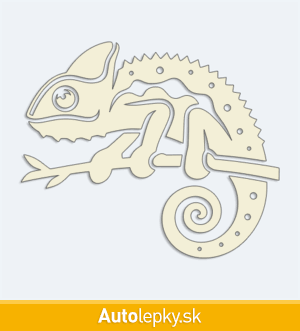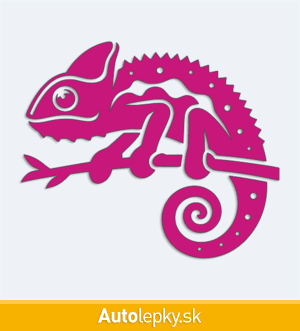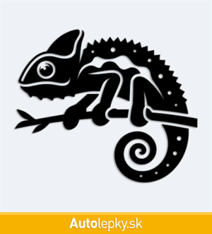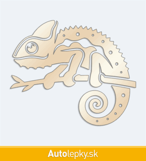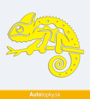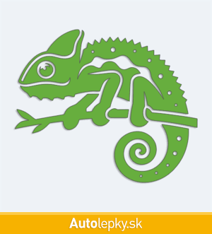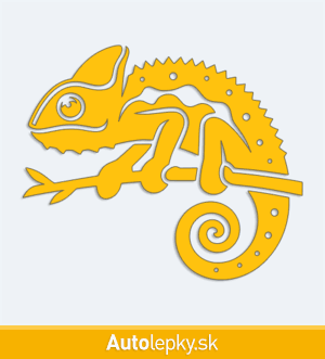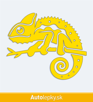 Nálepku chameleon na auto vyrábame v 40 farbách a mnohých veľkostiach. Minimálny rozmer samolepky je 10×8.4 cm, katalógové číslo 6045. Nálepka na auto chameleon je vyrobená z kvalitnej samolepiacej fólie s životnosťou 3-5 rokov.