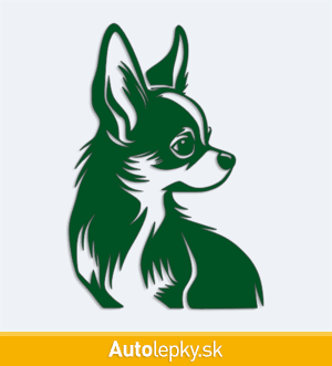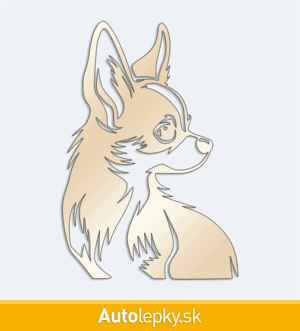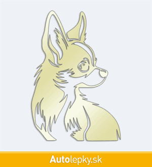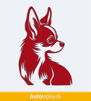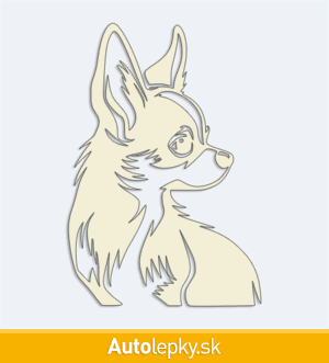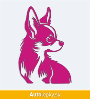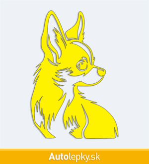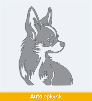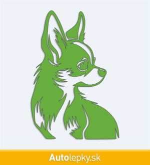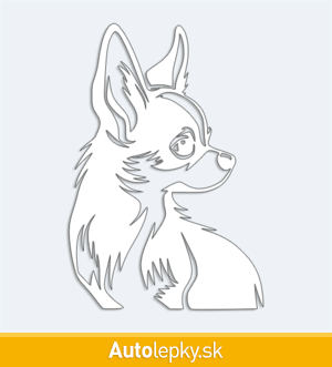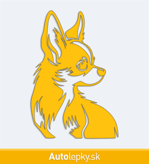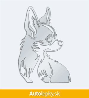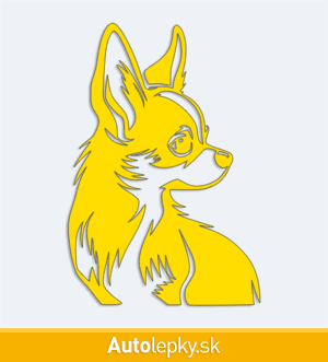 Nálepku Čivava na auto vyrábame v 40 farbách a mnohých veľkostiach. Minimálny rozmer samolepky je 8.2×12 cm, katalógové číslo 6031. Nálepka na auto Čivava je vyrobená z kvalitnej samolepiacej fólie s životnosťou 3-5 rokov.