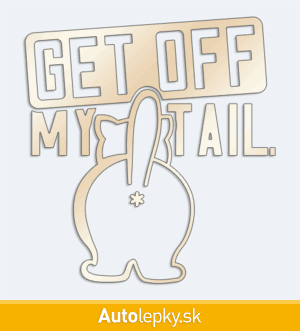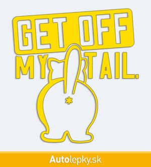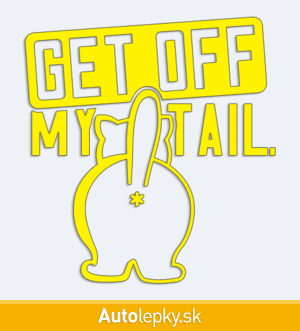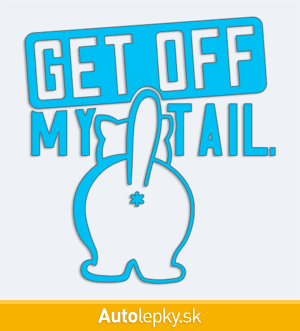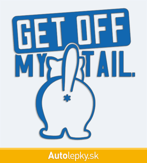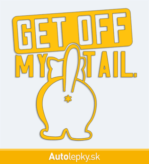Nálepku Get Off My Tail na auto vyrábame v 40 farbách a mnohých veľkostiach. Minimálny rozmer samolepky je 9.4×10 cm, katalógové číslo 5951. Nálepka na auto Get Off My Tail je vyrobená z kvalitnej samolepiacej fólie s životnosťou 3-5 rokov.