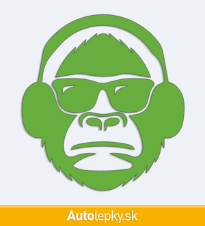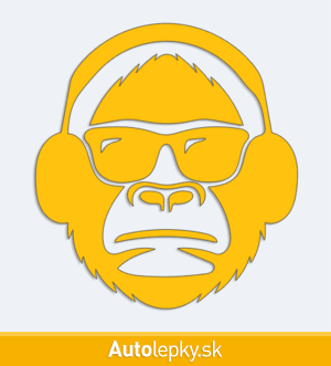 Nálepku gorila so slúchadlami na auto vyrábame v 40 farbách a mnohých veľkostiach. Minimálny rozmer samolepky je 9.2×10 cm, katalógové číslo 6033. Nálepka na auto gorila so slúchadlami je vyrobená z kvalitnej samolepiacej fólie s životnosťou 3-5 rokov.