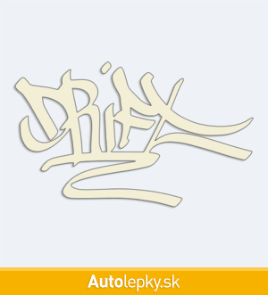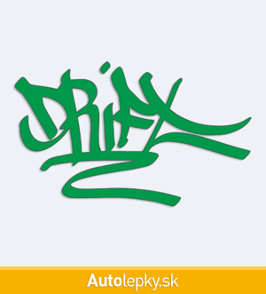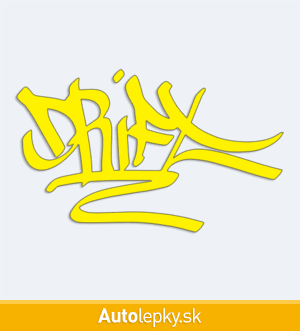 Nálepku graffiti drift na auto vyrábame v 40 farbách a mnohých veľkostiach. Minimálny rozmer samolepky je 10×6.1 cm, katalógové číslo 5968. Nálepka na auto graffiti drift je vyrobená z kvalitnej samolepiacej fólie s životnosťou 3-5 rokov.