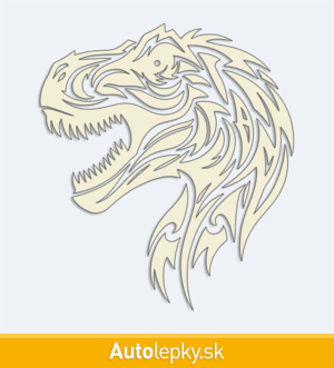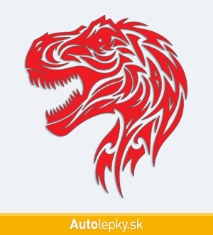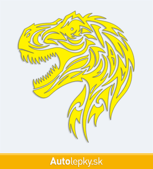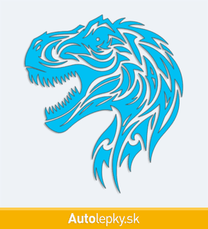 Nálepku hlava tyranosaura na auto vyrábame v 40 farbách a mnohých veľkostiach. Minimálny rozmer samolepky je 10.6×12 cm, katalógové číslo 6086. Nálepka na auto hlava tyranosaura je vyrobená z kvalitnej samolepiacej fólie s životnosťou 3-5 rokov.