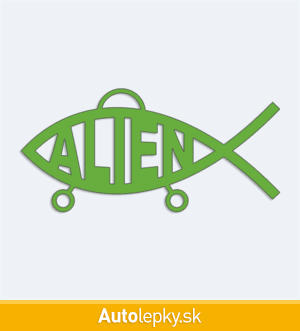 Nálepku ichtys alien na auto vyrábame v 40 farbách a mnohých veľkostiach. Minimálny rozmer samolepky je 10×4.8 cm, katalógové číslo 5438. Nálepka na auto ichtys alien je vyrobená z kvalitnej samolepiacej fólie s životnosťou 3-5 rokov.