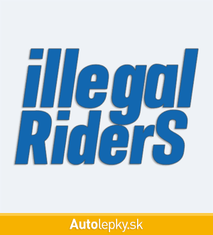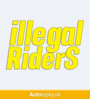 Nálepku Illegal Riders na auto vyrábame v 40 farbách a mnohých veľkostiach. Minimálny rozmer samolepky je 8×5.1 cm, katalógové číslo 6207. Nálepka na auto Illegal Riders je vyrobená z kvalitnej samolepiacej fólie s životnosťou 3-5 rokov.