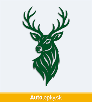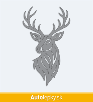 Nálepku jeleňia hlava na auto vyrábame v 40 farbách a mnohých veľkostiach. Minimálny rozmer samolepky je 5.9×10 cm, katalógové číslo 6240. Nálepka na auto jeleňia hlava je vyrobená z kvalitnej samolepiacej fólie s životnosťou 3-5 rokov.