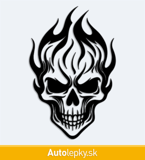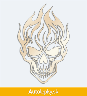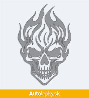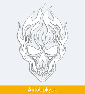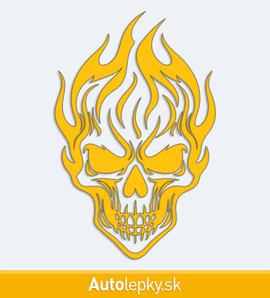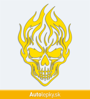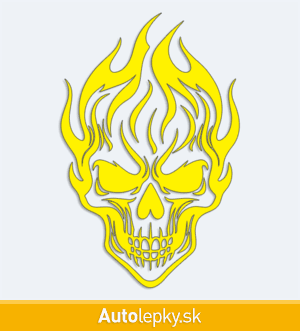 Nálepku lebka s plameňmi na auto vyrábame v 40 farbách a mnohých veľkostiach. Minimálny rozmer samolepky je 8.4×13 cm, katalógové číslo 6255. Nálepka na auto lebka s plameňmi je vyrobená z kvalitnej samolepiacej fólie s životnosťou 3-5 rokov.