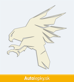 Nálepku letiaci dravý vták na auto vyrábame v 40 farbách a mnohých veľkostiach. Minimálny rozmer samolepky je 9.3×10 cm, katalógové číslo 6145. Nálepka na auto letiaci dravý vták je vyrobená z kvalitnej samolepiacej fólie s životnosťou 3-5 rokov.