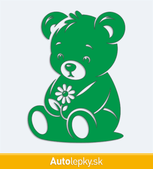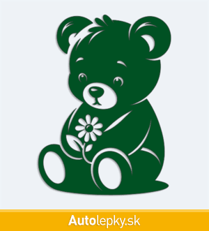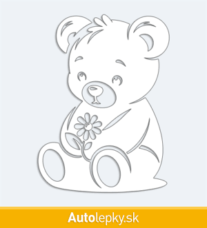 Nálepku medvedík s kvetinou na auto vyrábame v 40 farbách a mnohých veľkostiach. Minimálny rozmer samolepky je 8.8×12 cm, katalógové číslo 6032. Nálepka na auto medvedík s kvetinou je vyrobená z kvalitnej samolepiacej fólie s životnosťou 3-5 rokov.