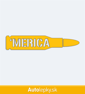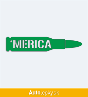 Nálepku náboj MERICA na auto vyrábame v 40 farbách a mnohých veľkostiach. Minimálny rozmer samolepky je 10×1.9 cm, katalógové číslo 1604. Nálepka na auto náboj MERICA je vyrobená z kvalitnej samolepiacej fólie s životnosťou 3-5 rokov.