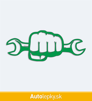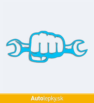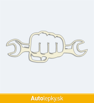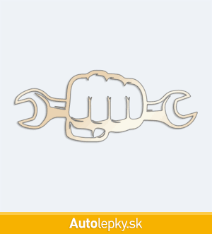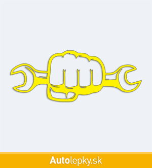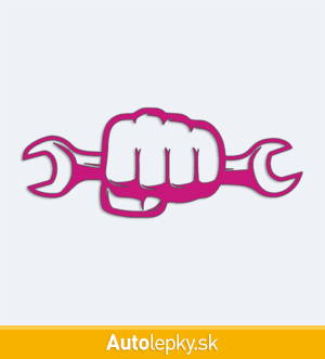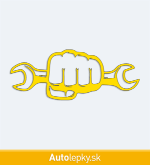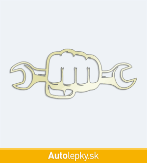 Nálepku päsť a kľúč na auto vyrábame v 40 farbách a mnohých veľkostiach. Minimálny rozmer samolepky je 10×3.9 cm, katalógové číslo 6265. Nálepka na auto päsť a kľúč je vyrobená z kvalitnej samolepiacej fólie s životnosťou 3-5 rokov.