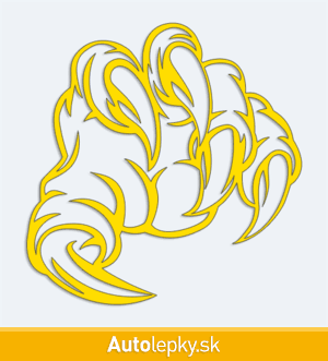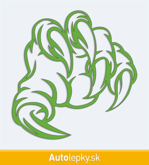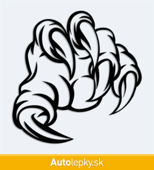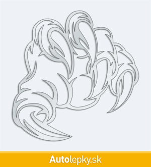 Nálepku pazúry na auto vyrábame v 40 farbách a mnohých veľkostiach. Minimálny rozmer samolepky je 9.7×10 cm, katalógové číslo 6011. Nálepka na auto pazúry je vyrobená z kvalitnej samolepiacej fólie s životnosťou 3-5 rokov.