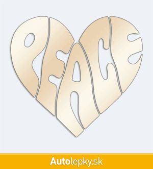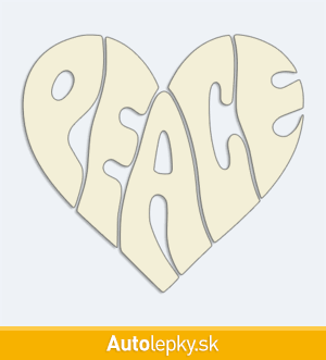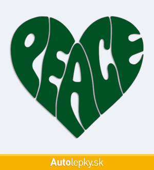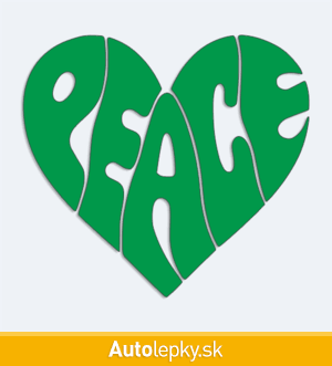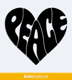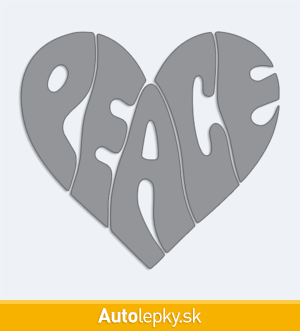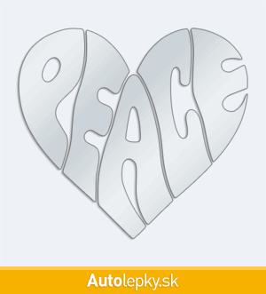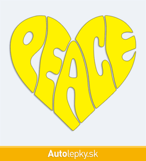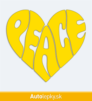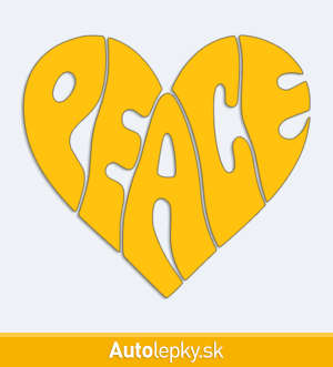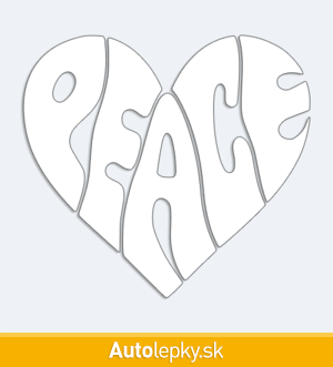 Nálepku PEACE srdce na auto vyrábame v 40 farbách a mnohých veľkostiach. Minimálny rozmer samolepky je 10×9.2 cm, katalógové číslo 6116. Nálepka na auto PEACE srdce je vyrobená z kvalitnej samolepiacej fólie s životnosťou 3-5 rokov.