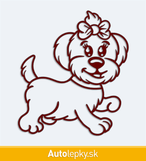 Samolepku psík s mašľou na auto doplníte menom psa alebo krátkym textom. Minimálny rozmer samolepky je 8.8×10 cm, katalógové číslo 22235. Nálepka na auto psík s mašľou je vyrobená z kvalitnej samolepiacej fólie s životnosťou 3-5 rokov.
