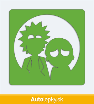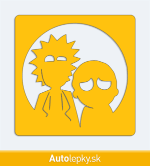 Nálepku Rick a Morty na auto vyrábame v 40 farbách a mnohých veľkostiach. Minimálny rozmer samolepky je 10×10 cm, katalógové číslo 6274. Nálepka na auto Rick a Morty je vyrobená z kvalitnej samolepiacej fólie s životnosťou 3-5 rokov.