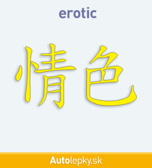 Nálepku čínsky znak Erotic na auto vyrábame v 40 farbách a mnohých veľkostiach. Minimálny rozmer samolepky je 10.1×5.3 cm, katalógové číslo 3211. Nálepka na auto s čínskym znakom Erotic je vyrobená z kvalitnej samolepiacej fólie s životnosťou 3-5 rokov.
