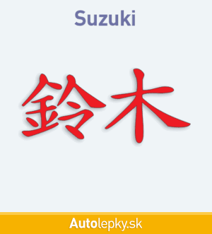 Nálepku čínsky znak Suzuki na auto vyrábame v 40 farbách a mnohých veľkostiach. Minimálny rozmer samolepky je 10×4.4 cm, katalógové číslo 3232. Nálepka na auto s čínskym znakom Suzuki je vyrobená z kvalitnej samolepiacej fólie s životnosťou 3-5 rokov.