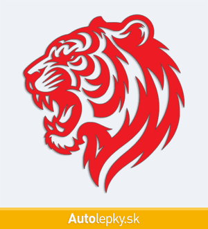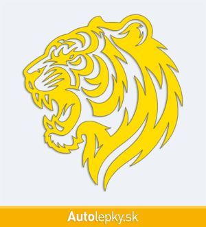 Nálepku hlava tigra na auto vyrábame v 40 farbách a mnohých veľkostiach. Minimálny rozmer samolepky je 9×10 cm, katalógové číslo 6101. Nálepka na auto s hlavou tigra je vyrobená z kvalitnej samolepiacej fólie s životnosťou 3-5 rokov.
