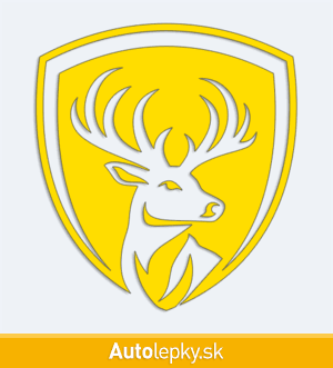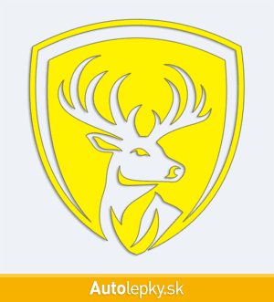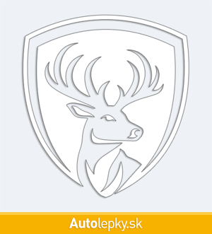 Nálepku jeleň v erbe na auto vyrábame v 40 farbách a mnohých veľkostiach. Minimálny rozmer samolepky je 9.1×10 cm, katalógové číslo 6260. Nálepka na auto s jeleňom v erbe je vyrobená z kvalitnej samolepiacej fólie s životnosťou 3-5 rokov.