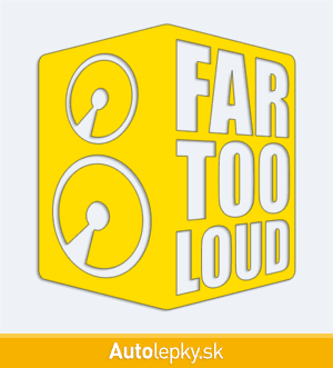 Nálepku Far Too Loud na auto vyrábame v 40 farbách a mnohých veľkostiach. Minimálny rozmer samolepky je 8.9×10 cm, katalógové číslo 2894. Nálepka na auto s nápisom Far Too Loud je vyrobená z kvalitnej samolepiacej fólie s životnosťou 3-5 rokov.