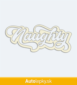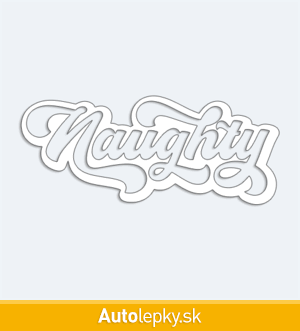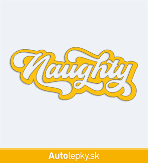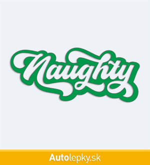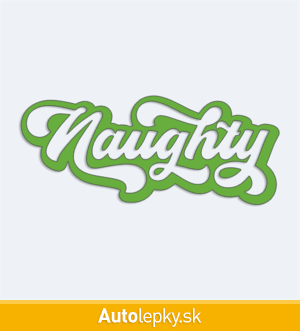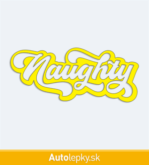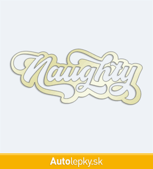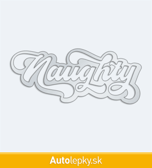 Nálepku nápis Naughty na auto vyrábame v 40 farbách a mnohých veľkostiach. Minimálny rozmer samolepky je 10×4.2 cm, katalógové číslo 6146. Nálepka na auto s nápisom Naughty je vyrobená z kvalitnej samolepiacej fólie s životnosťou 3-5 rokov.