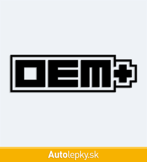 Nálepku oem+ na auto vyrábame v 40 farbách a mnohých veľkostiach. Minimálny rozmer samolepky je 10×2.9 cm, katalógové číslo 5846. Nálepka na auto s nápisom oem+ je vyrobená z kvalitnej samolepiacej fólie s životnosťou 3-5 rokov.