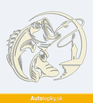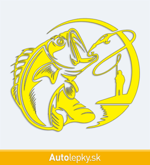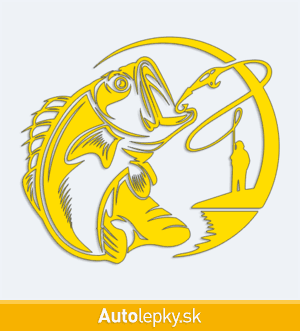 Nálepku ryba na udici na auto vyrábame v 40 farbách a mnohých veľkostiach. Minimálny rozmer samolepky je 15×13.2 cm, katalógové číslo 6295. Nálepka na auto s rybou na udici je vyrobená z kvalitnej samolepiacej fólie s životnosťou 3-5 rokov.