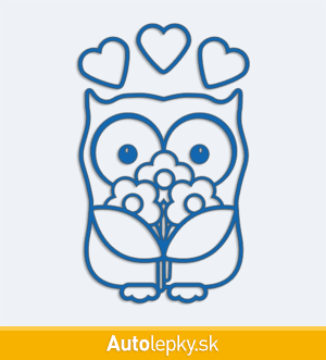 Nálepku sova s kvetinou na auto vyrábame v 40 farbách a mnohých veľkostiach. Minimálny rozmer samolepky je 7.3×12 cm, katalógové číslo 2472. Nálepka na auto sova s kvetinou a srdiečkami je vyrobená z kvalitnej samolepiacej fólie s životnosťou 3-5 rokov.