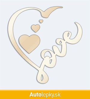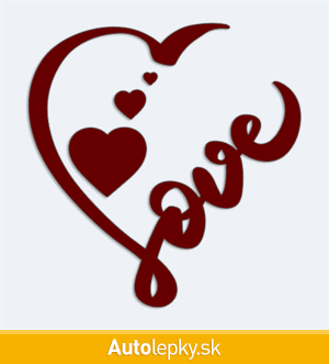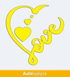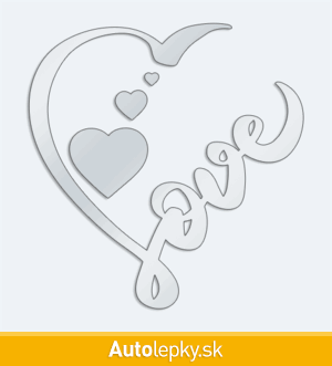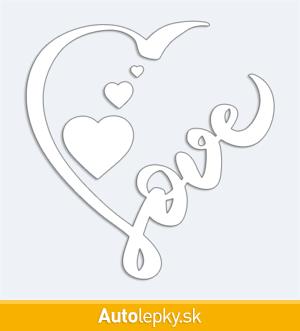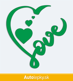 Nálepku srdiečka love na auto vyrábame v 40 farbách a mnohých veľkostiach. Minimálny rozmer samolepky je 9.6×10 cm, katalógové číslo 6199. Nálepka na auto srdiečka love je vyrobená z kvalitnej samolepiacej fólie s životnosťou 3-5 rokov.