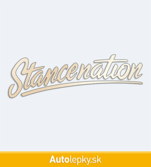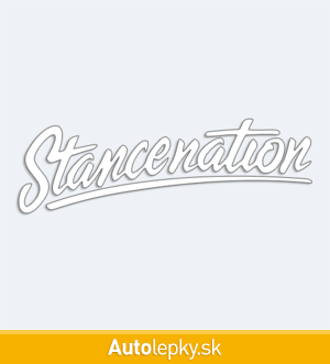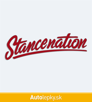 Nálepku Stance nation na auto vyrábame v 40 farbách a mnohých veľkostiach. Minimálny rozmer samolepky je 12×3.8 cm, katalógové číslo 5963. Nálepka na auto Stance nation je vyrobená z kvalitnej samolepiacej fólie s životnosťou 3-5 rokov.