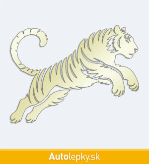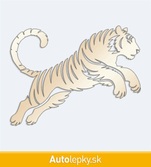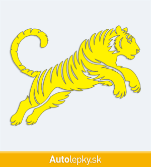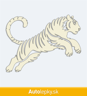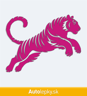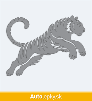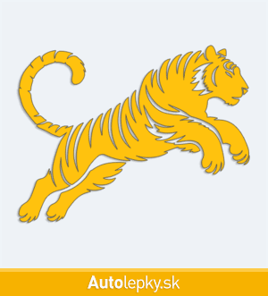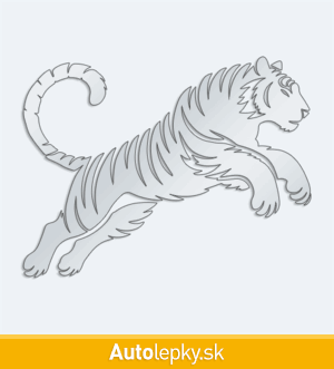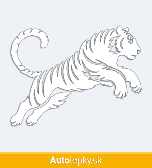 Nálepku tiger v skoku na auto vyrábame v 40 farbách a mnohých veľkostiach. Minimálny rozmer samolepky je 10×7.7 cm, katalógové číslo 6124. Nálepka na auto tiger v skoku je vyrobená z kvalitnej samolepiacej fólie s životnosťou 3-5 rokov.